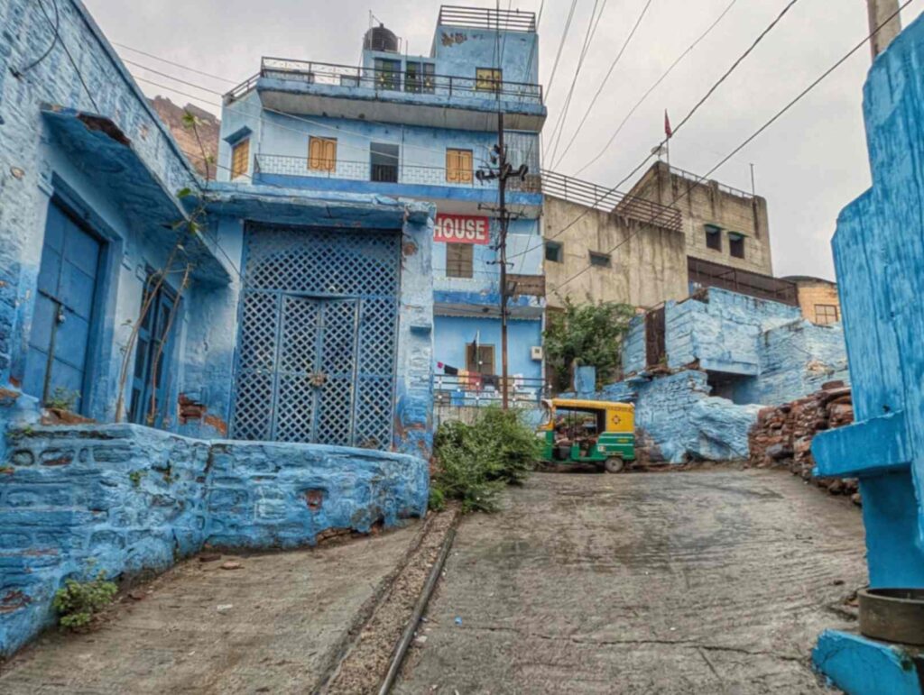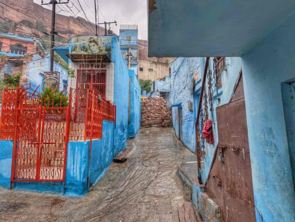 But here’s where the monsoon magic kicked in – the rain had washed all the dust off these ancient walls, making the indigo paint pop like never before.