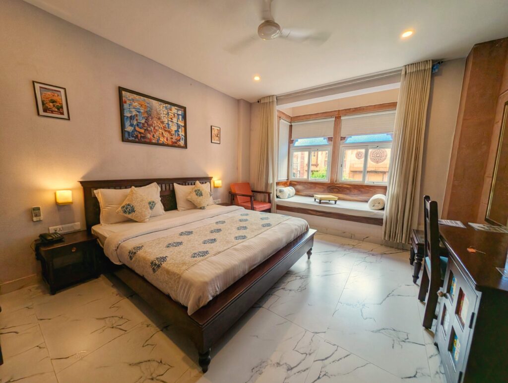 From my base at Kankaria Heritage, I could walk to every major attraction – the Clock Tower, the Blue City lanes, Toorji ka Jhalra stepwell, and even the base of Mehrangarh Fort & Jaswant Thada.